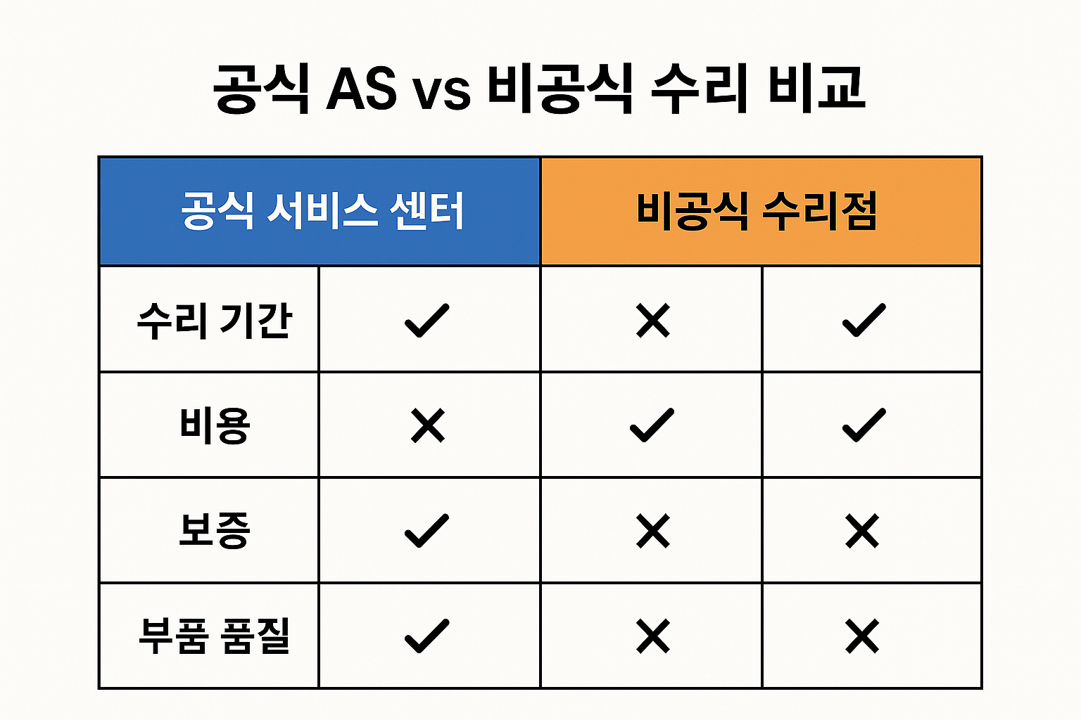 • ❌ 수리 기간 길음 (평균 7~14일)