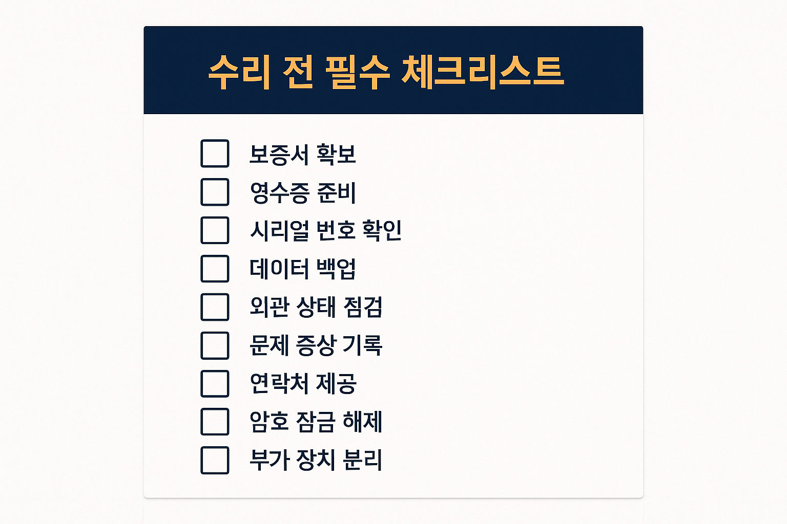 📋 수리 전 필수 체크리스트