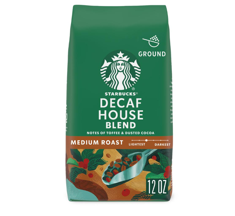 스타벅스 하우스 블렌드 디카페인 | 부드러운 맛, 카페인 제거 후 맛 변화 적음, 원두 타입 | 14,000원/200g | 스타벅스 팬, 부드러운 맛 선호자 |